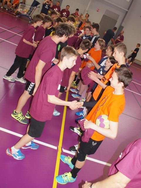 Besonders viel Spaß und Kennenlernen gab es bei den französisch-deutsch gemischten Spielen, aber natürlich wollte man sich auch zwischen den Städten messen. Zu Beginn überreichten die Besigheimer Spielern Freundschafts T-Shirts. Die Halle war voll und die Zuschauer konnten durchweg spannende Spiele mit engem Ausgang und so manchem handballerischen Kunststück sehen.
