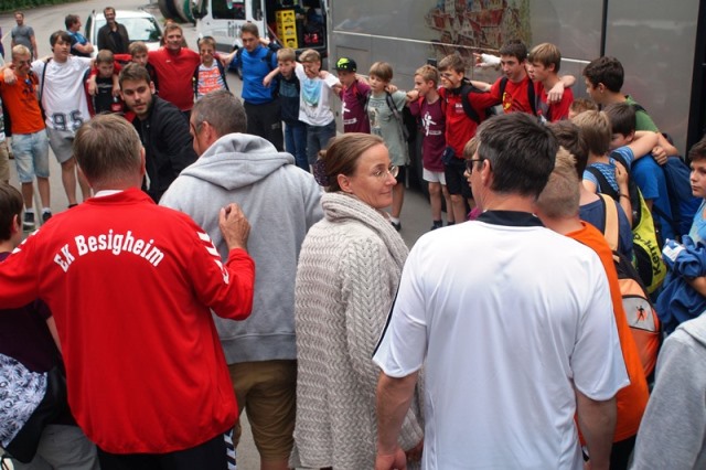 ts zum dritten Mal fand nun das Treffen zwischen den Handballjugenden des ASL Ay und dem EK Besigheim statt und mit 61 EKBlern fand das Handballjugendcamp in diesem Jahr wieder turnusgemäß in Ay statt. Was im Jahr 2013/14 vielversprechend startete hat sich im Jahr des 50-jährigen Bestehens der Städtepartnerschaft bewährt und aus Partnerschaft ist Freundschaft geworden. Das Interesse war überwältigend, jeder Platz war besetzt so dass noch ein zusätzlicher Kleinbus organisiert wurde. Am Freitag, 10.Juni ging es also los, die Teilnehmer waren vollständig da und die Stimmung im Bus war schon bei der Abfahrt grandios und so war selbst die lange Fahrt recht kurzweilig.