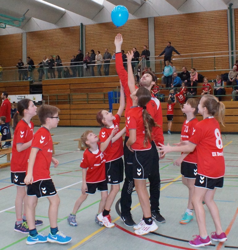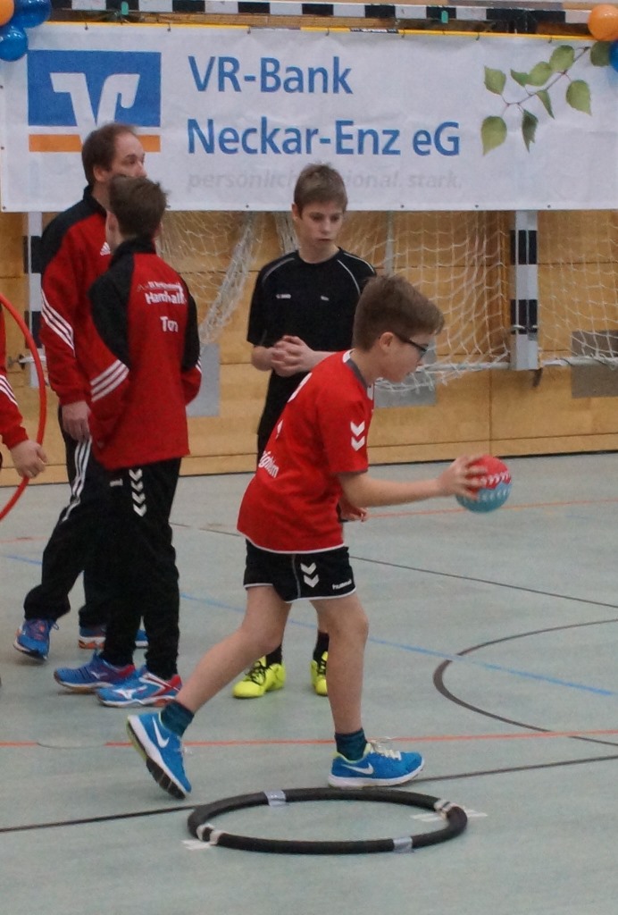 Der Spieltag war sehr gut besucht und rund 60 Kinder hatten bei den vielfältigen Spielformen viel Spaß und zeigten neben 4+1-Handball sowie einer weiteren Teamspielform was Sie können. In den Spielpausen absolvierten die Kinder verschiedene Koordinationsparcours. Für das leibliche Wohl war durch das EKB-Bewirtungsteam gemeinsam mit den Eltern gesorgt. Vielen Dank allen Helfern und der VR Bank Neckar Enz für die Tolle Unterstützung!